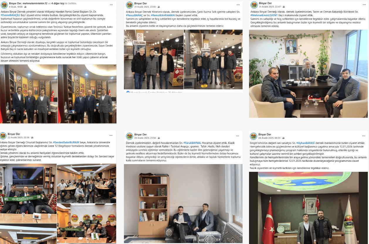 Ankarabinyar derneği olarak iş insanı, brokrat, esnaf, öğrenci ve bir çok alanda çalışan hemşehrilerimizi her daim ziyaret eder, dernek olarak her daim yanlarında olduklarımızı hissettirmek için ziyaretlerimize hız kesmeden devam etmekteyiz.